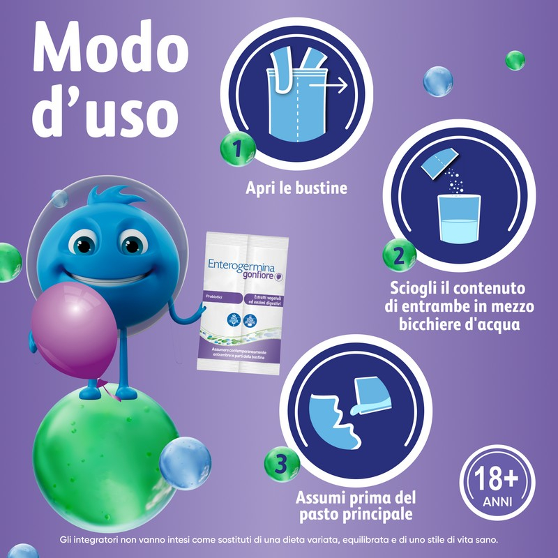 I probiotici e gli enzimi sono elementi molto delicati che devono essere conservati con la massima accuratezza per preservarne le funzionalità. Questo è il motivo per cui Enterogermina gonfiore è composto da bustine accoppiate che permettono la conservazione separata dei due nutrienti fino al momento dell'assunzione.